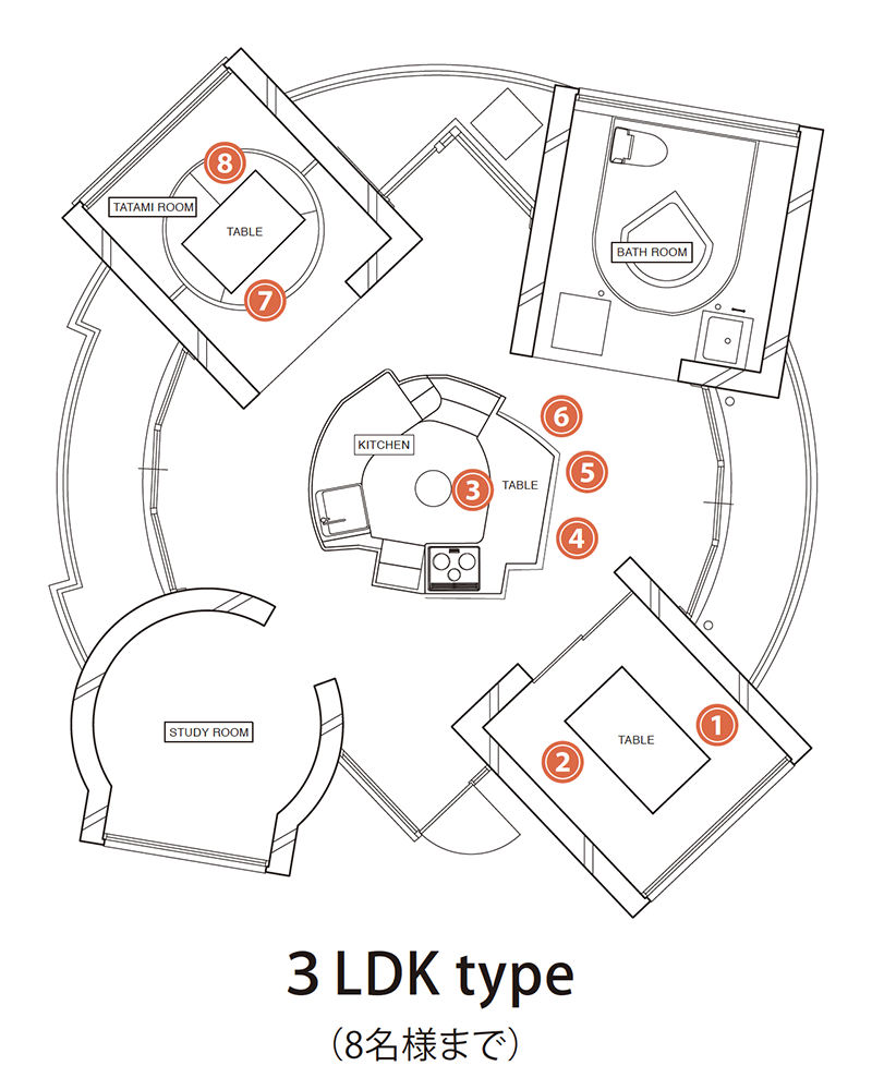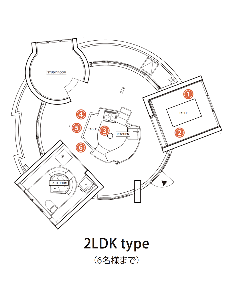 デコボコの床を歩きながらアイデアを練ったり、球の部屋でのんびりしたり、色とりどりのお部屋が皆さんの身体と頭を活性化してくれることでしょう。建物のミニガイドを聞いて刺激を受けたら、思いつかなかったアイデアが降りてくるかも? 一度に最大8名まで使えるので、ミーティングやブレストの場所としてもぴったり。プロジェクター・スクリーンのご用意もあります。もちろんお一人でのご利用もOK!
